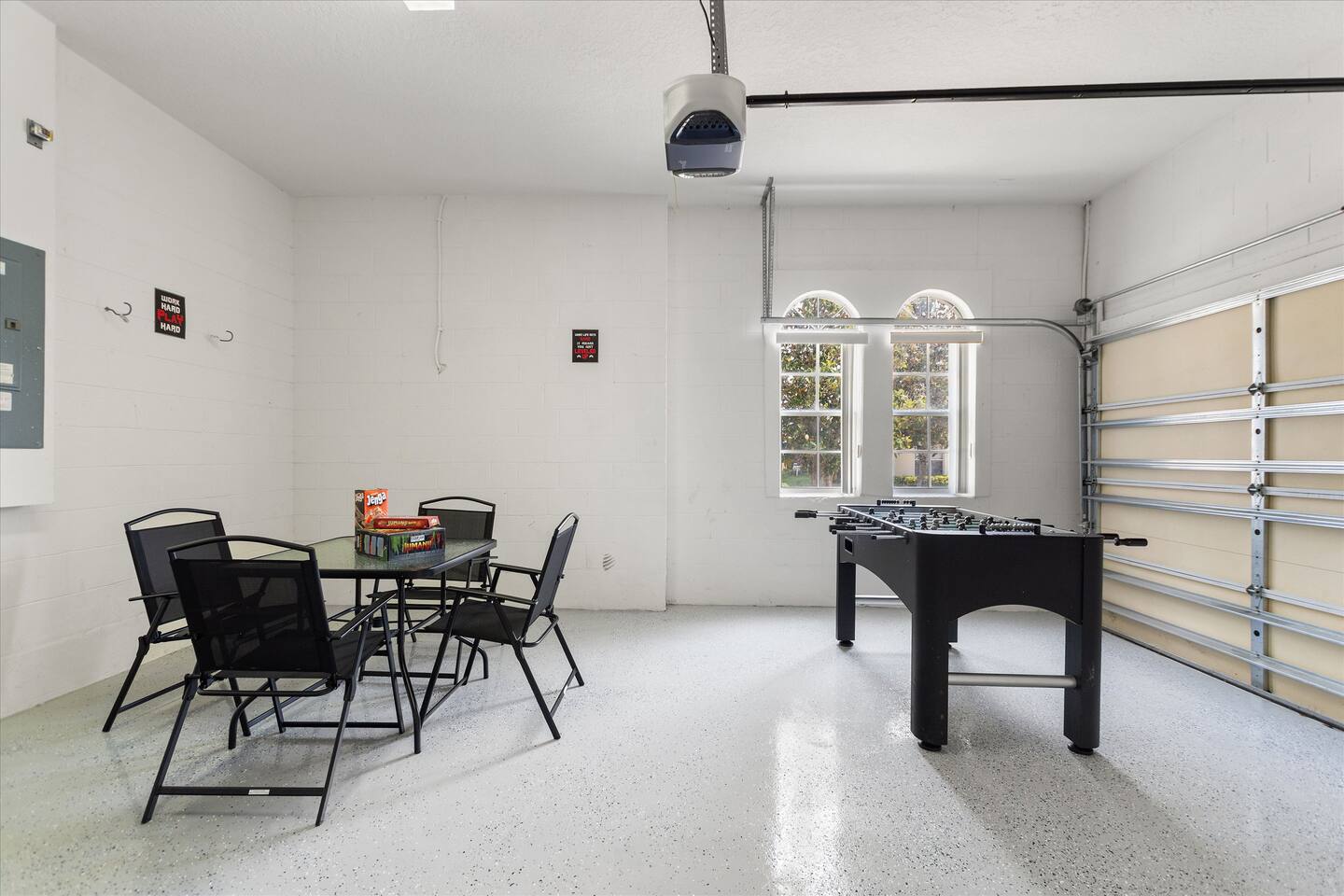 Feel right at home and enjoy full access to the entire house โ yep, even the garage! ๐๐จ Itโs roomy enough for your ride, so bring it and make the most of your stay. Whether you're relaxing inside or parking up, everything's ready for you! ๐ ๐ Garage Use Disclaimer Please note that our garage has been converted into a fun game room for your enjoyment! While it's not typically used for parking, in extreme weather conditions, you're welcome to use it for your vehicle. Please return any game room items or furniture to their original place afterward.