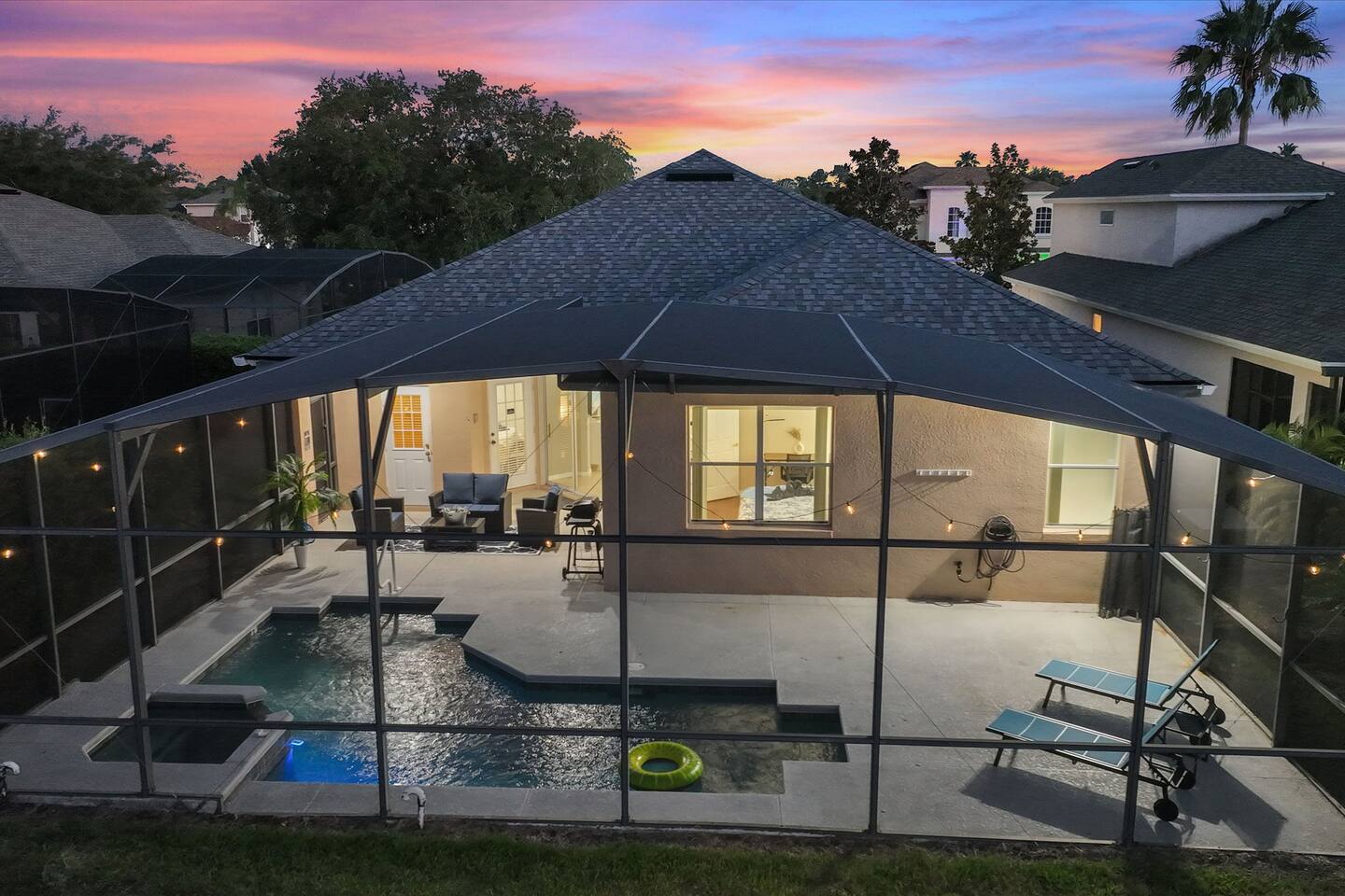 ๐ก Welcome to Your Next Getaway โ Estate Inspired Living where Luxury Meets Leisure! โจ Looking for a stay that screams โI deserve this!โ? Well, buckle upโthis elegant 4-bedroom, 3.5-bathroom showstopper is bringing the sparkle, the space, and the spa vibes all in one fabulous package! ๐โโ๏ธ๐ด โ 4 Dreamy Bedrooms & 3.5 Luxe Bathrooms โ Enough space for everyone to spread out without the morning bathroom battles ๐ฟ๐ช โ Comfy-Chic Beds โ Weโre talkinโ hotel-level plushness thatโll have you sleeping like royalty ๐ด๐ โ Designer Kitchen Goals โ Fully stocked with everything from sleek appliances to wine glassesโwhether you're a Top Chef or just here for the snacks ๐ท๐ณ โ Smart TVs + Blazing Fast WiFi โ For movie nights, remote work, or those TikTok dance breaks ๐ป๐บ โ Laundry Room Love โ Full-size washer & dryer to keep those vacation fits fresh ๐๐งบ ๐ฆ Poolside Perfection Awaits! โ๏ธ Dive into your private heated pool for a splash of fun or relax in the **bubb after a long day of park-hopping ๐ ๐ฝ๏ธ Enjoy meals in the outdoor dining area, perfect for sunset BBQs and morning coffee with a view ๐ฅโ ๐ช Lounge chairs, a shaded patio, and total relaxation vibesโyes please! ๐ Luxury Touches Youโll Notice Everywhere From elegant lighting and designer tile to spa-inspired bathrooms and modern finishes, this home serves serious style and comfort from the moment you walk in. Prepare to be wowed the second you step inside! ๐ Location? Absolutely Unbeatable! ๐ฐ Just minutes from Disney and Legoland โ Mickey, Minions, and magic await! ๐ข ๐ Surrounded by top-rated restaurants, shopping, and golf courses โ because you deserve the best of everything ๐๏ธโณ ๐จ This property is in a safe, quiet, gated community for extra peace of mind. ๐ Ideal for families, friend groups, and a luxury escape with all the extras! Game on! ๐ฎ๐๐น๏ธ Your private game room brings the fun, laughs, and friendly battles right to your stay! ๐ฏ โณ This gem books fastโlock in your dates before someone snags your sunshine!